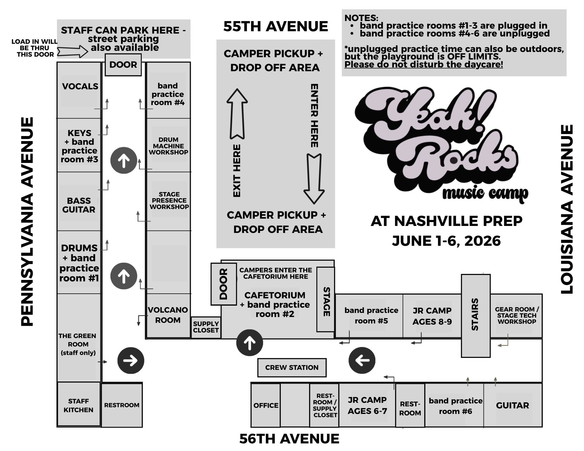 - Band Managers arrive by 1:00 PM (please arrive at 12:45 on Monday)
