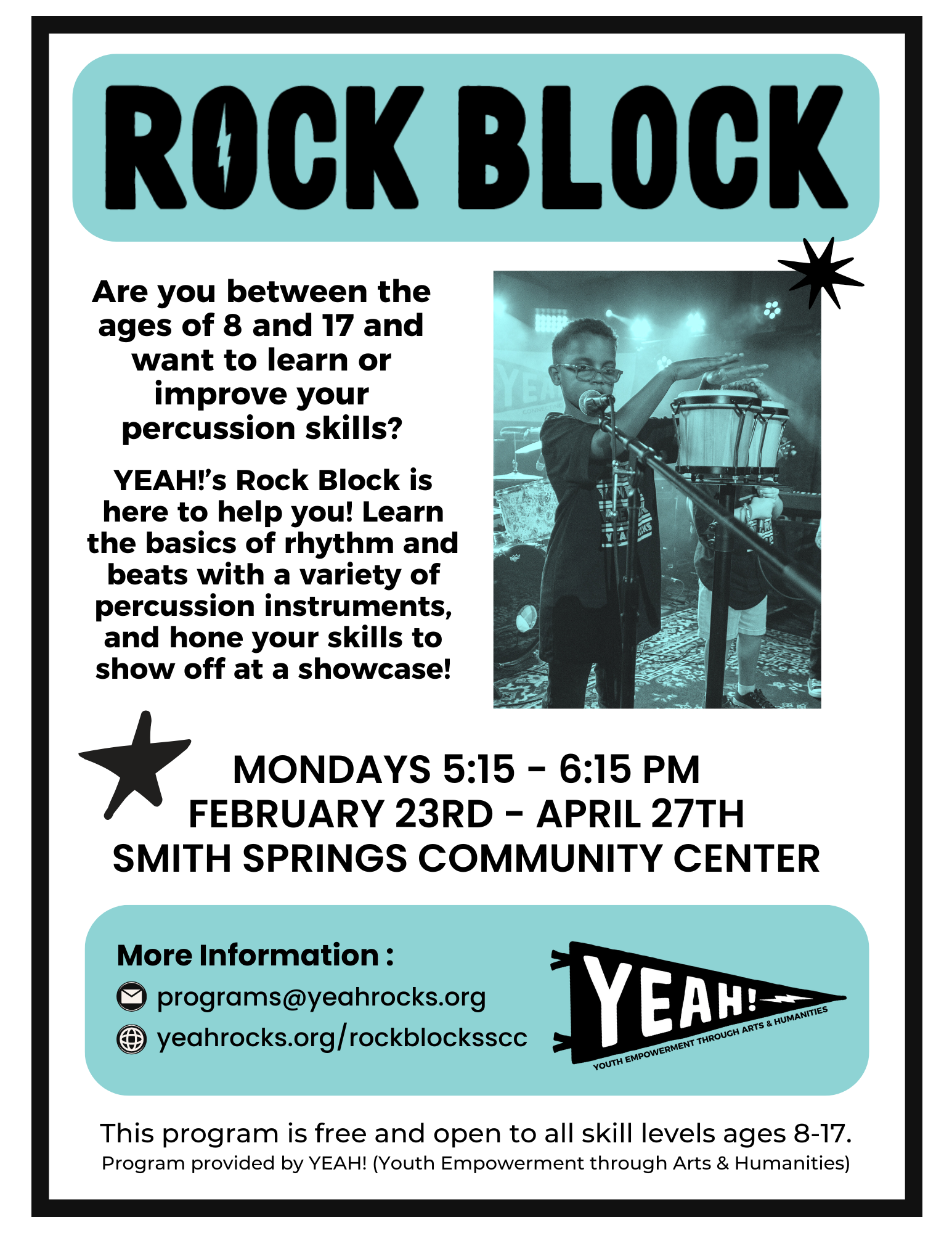 YEAH!’s Rock Block programs are now open for the spring 2026 semester!
